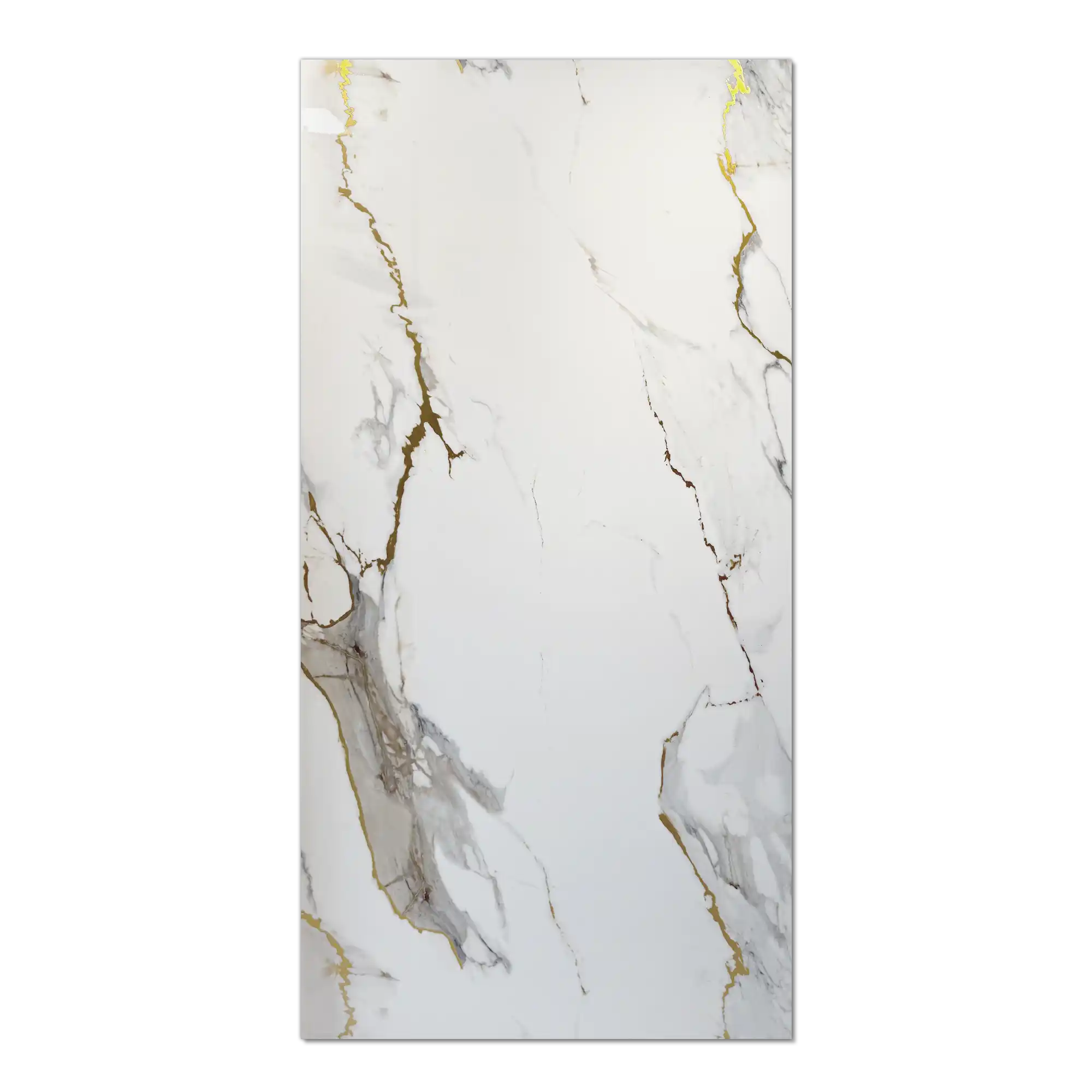 - Color/finish: white with gold veins, glossy